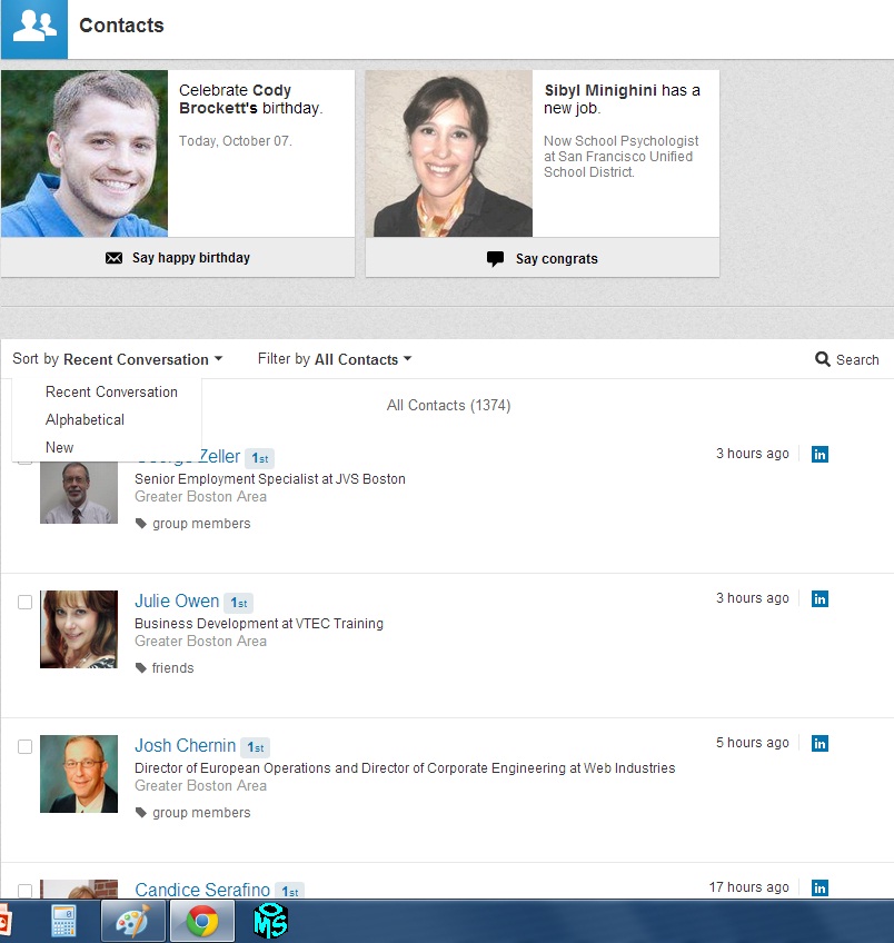 lost touch newTo get to your connections with whom you spoke eons ago, simply click on Network and select Contacts.